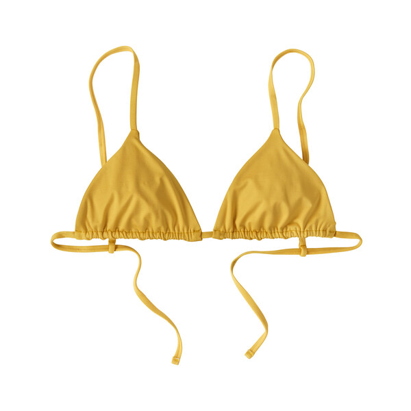 The smallest bikini swim top with a highly versatile, classic triangle design. Made of 83% recycled nylon/17% spandex (solids) or 83% recycled polyester/17% spandex (prints). Fair Trade Certified™ sewn.