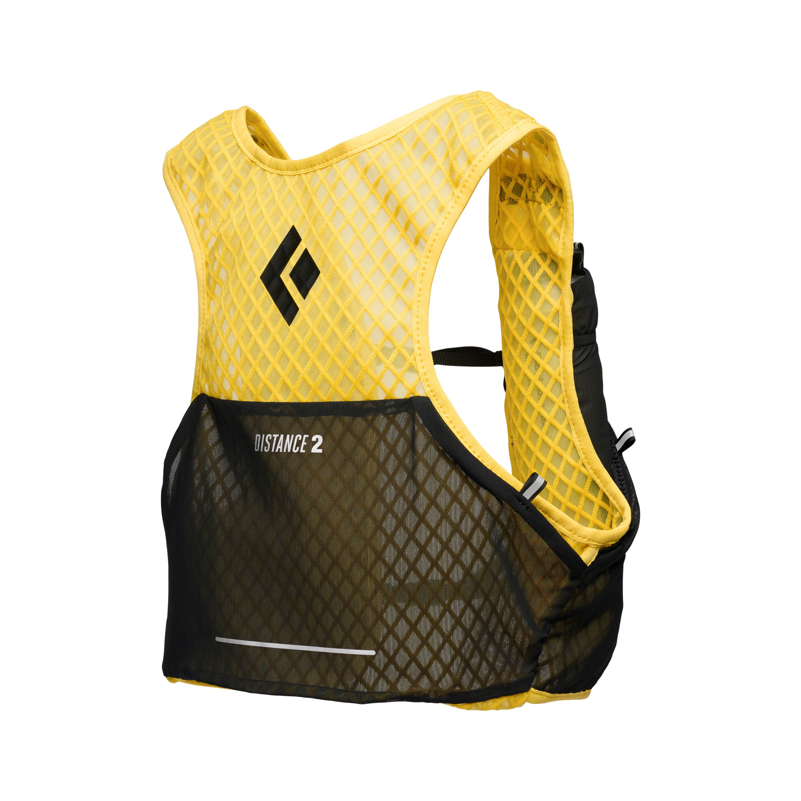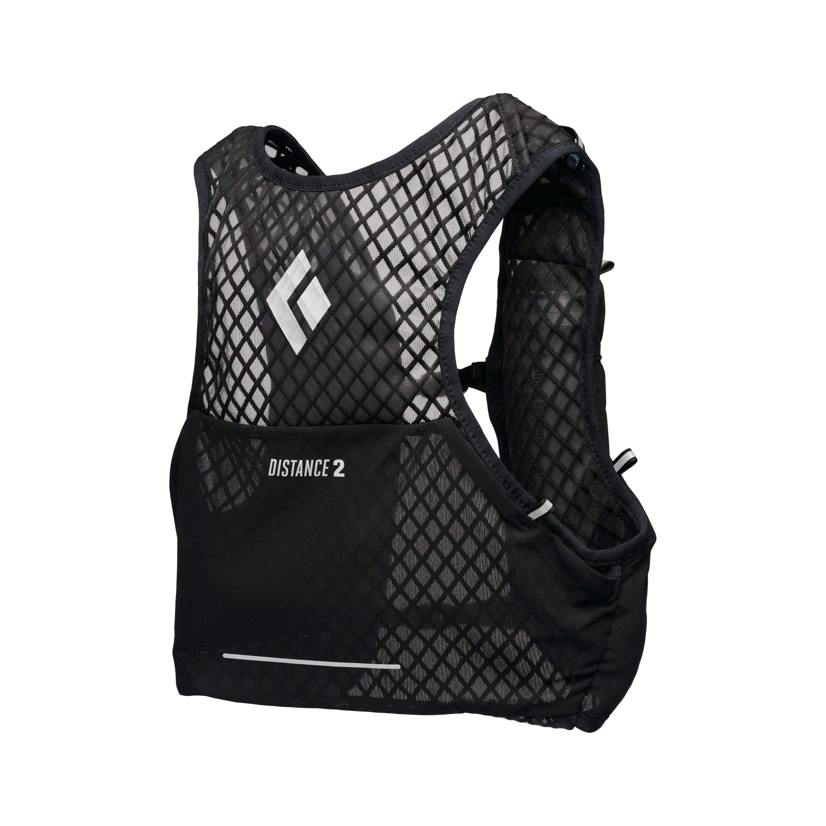 With soft edge binding and stretch mesh construction the Distance 2L has a soft next-to-skin feel. The custom engineered diamond spacer mesh back panel is extremely breathable and made from a soft material that eliminates chafe. Thoughtful pocketing and innovative soft flask storage system provides security for on-trail essentials and improves efficiency when refilling water. The vest has two front pockets that fit two 500 mL soft flasks—which are included. A rear lumbar pocket stores larger gear and a single zip front pocket holds important items and comes with a key leash.