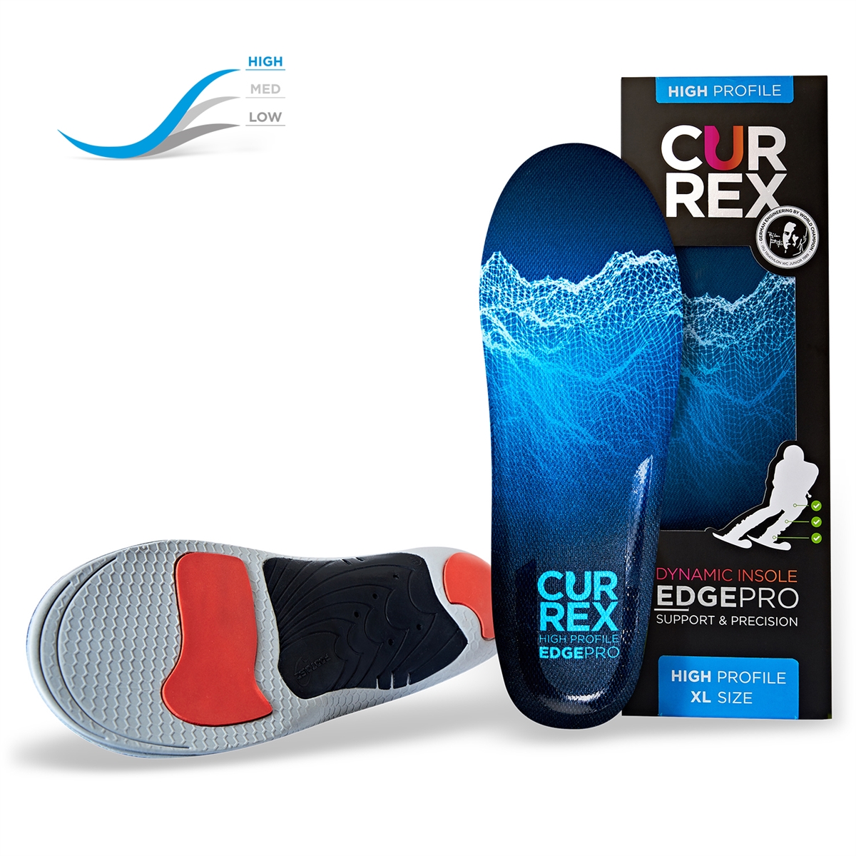 Our currexSole EDGEPRO ski insoles are the perfect answer to 100’s of ski boot fitting problems. They do this by guiding and accommodating the foot within the boot, giving better pressure distribution. This has a positive effect on the entire kinetic chain and thus reduces strain on your ankles, knees, hips and lower back as you ski. Our currexSole EDGEPRO ski insoles will help you with your balance, enable you to transfer your weight more smoothly and provide instant improved control over your ski. Whether you are a beginner or a seasoned expert – currexSole EDGEPRO insoles will help to make uncomfortable boots a thing of the past. The high profile EDGEPRO Insoles are suitable for feet with a high arch profile.