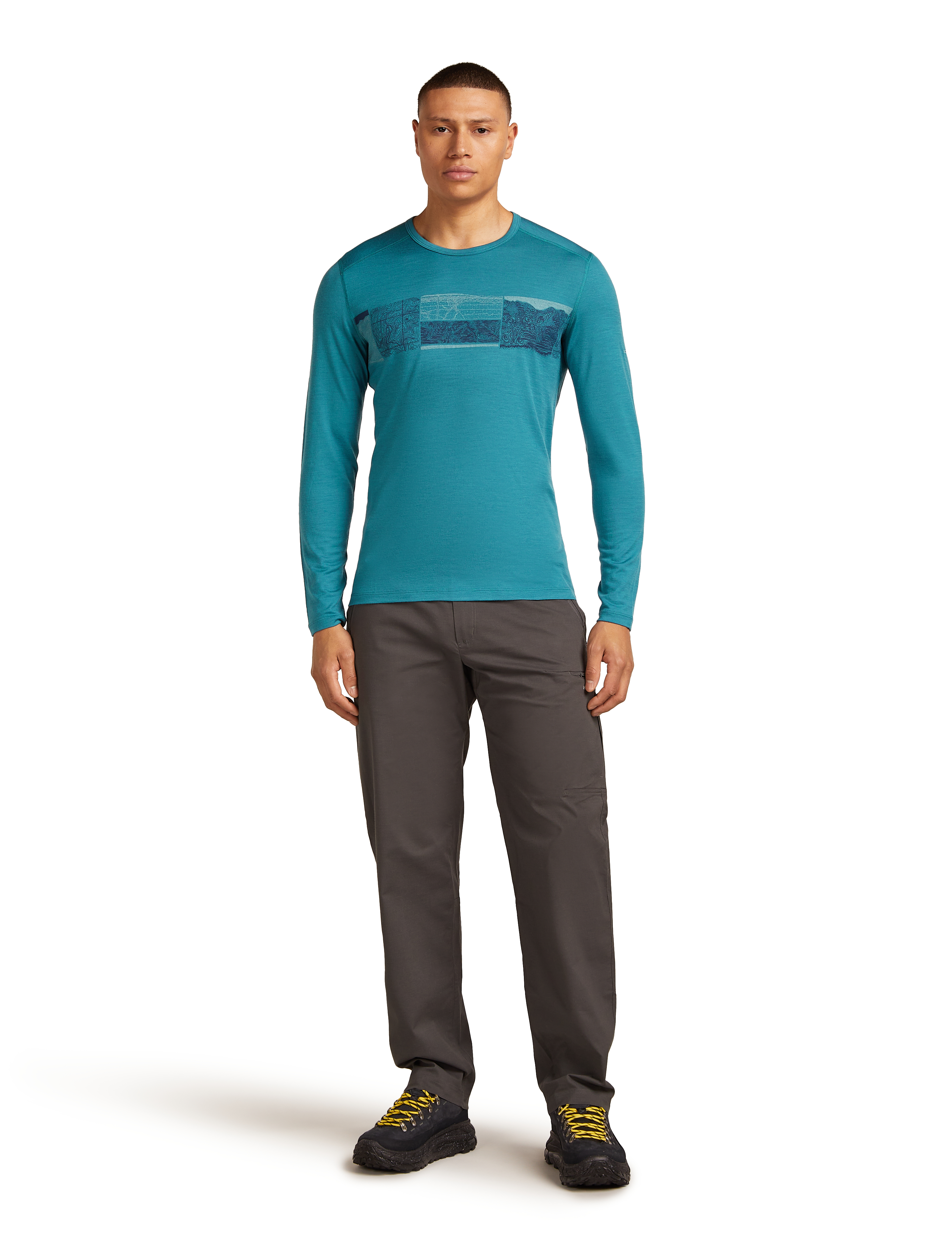 Setting the standard for all others to follow, the 200 Oasis Long Sleeve Crewe Elevation Line is icebreaker's best-selling base layer—a versatile active top for year-round layering and everyday comfort. The original artwork features a unique infographic showcasing elevation lines, topographic maps, and mountain anatomy.