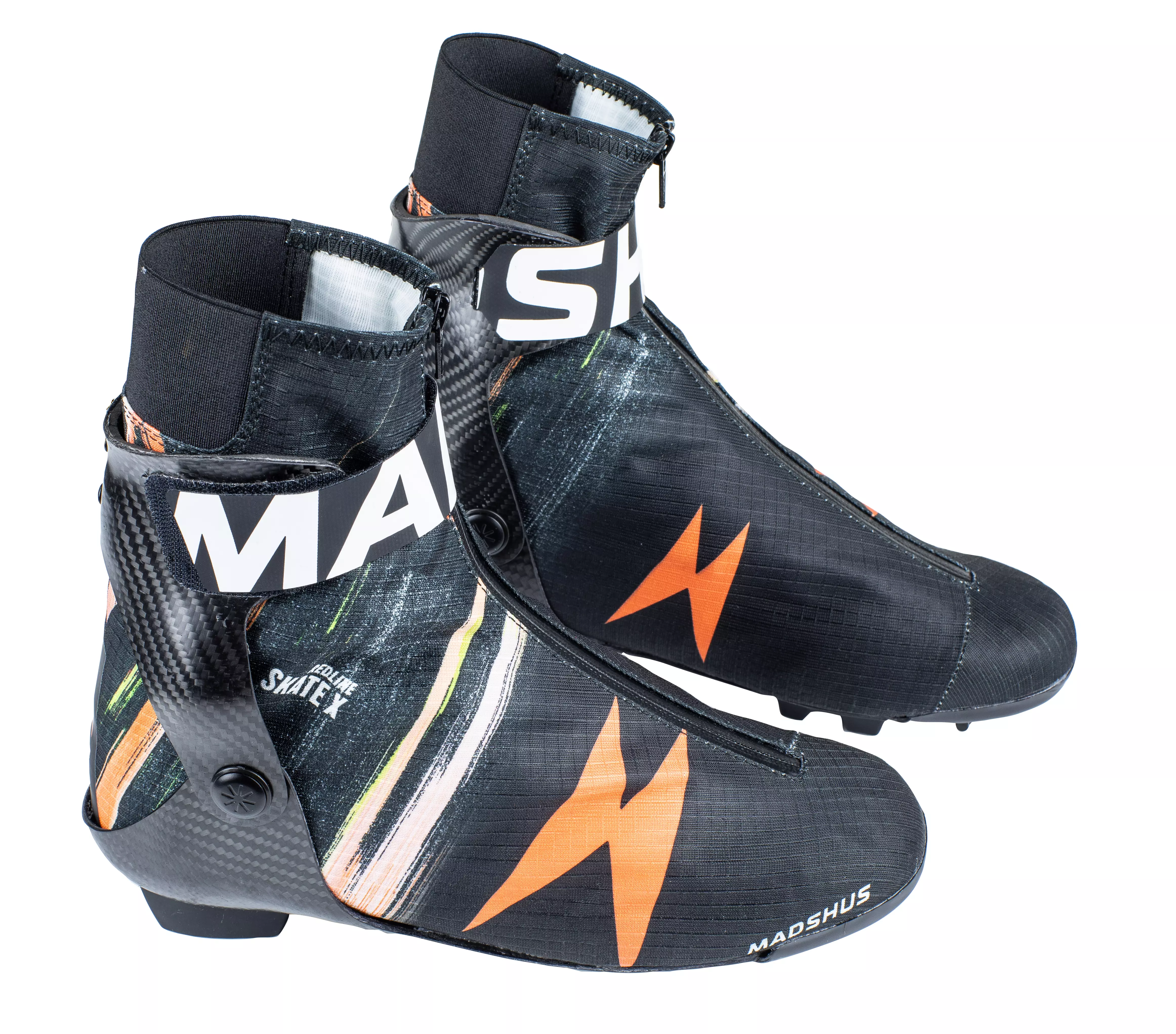 A boundary-defying skate boot with our new RED Carbon Chassis, Madshus Pro Ripstop upper, snug-fitting Race Wrap 2.0 construction, and the Rottefella SkateX outsole