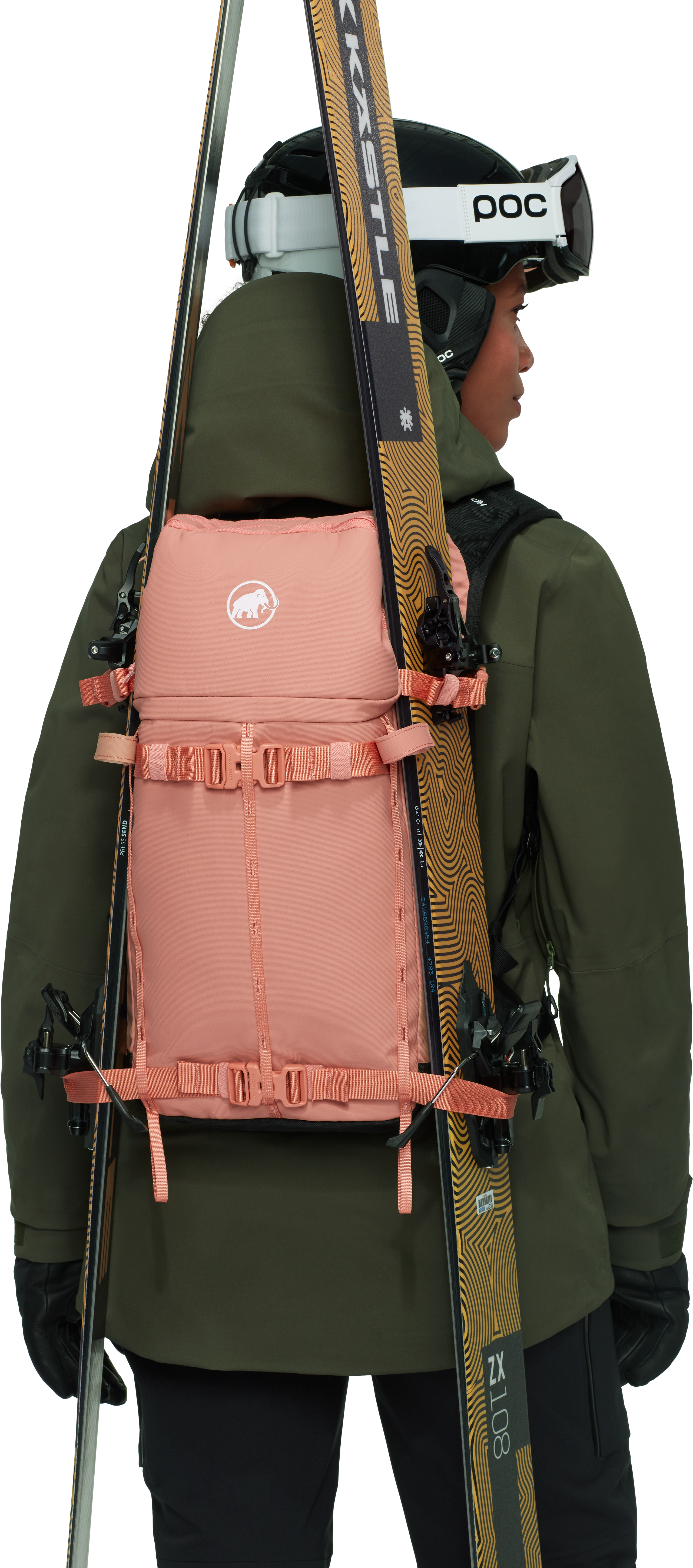The legendary Nirvana is true snow sports pack, optimized for freeriding and lift-supported ski touring. Versatile and well-equipped with specialized winter features, the Nirvana 18 is the ideal partner for a wide range of plans. Organize and stow all the essentials with easy top access to the main compartment. A separate avalanche equipment compartment ensures you are always prepared, while a dedicated internal sleeve makes the pack compatible with the Mammut Back Protector. Skis and splitboards can be attached A-frame style. An optimized carrying system and women's fit, features adapted shoulder straps, a tailored hip belt, and a shorter back length for maximum comfort and freedom of movement. The specially selected fabrics, including the extremely robust outer, are PFC-free and made from recycled materials.