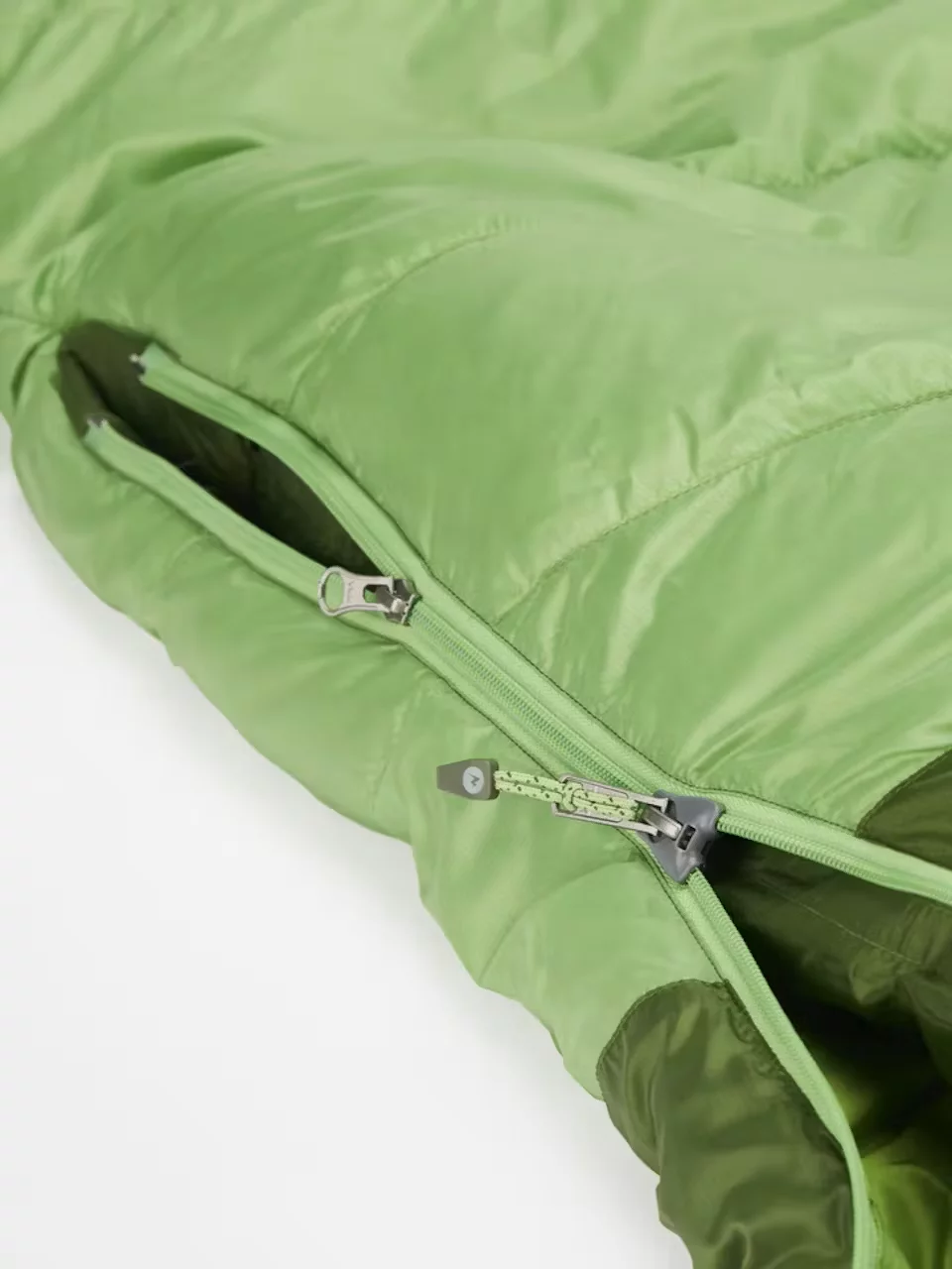 Anti-snag slider on the main zipper and fold-down secondary zipper provide extra ventilation and easy access in and out of the sleeping bag.