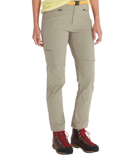 The Marmot Women’s Mountain Active Pant blends comfort, functionality, and sustainability. Its fabric is a blend of recycled nylon and elastane, offering light stretch and freedom of movement. A PFC-free DWR treatment gives water repellency under light moisture.