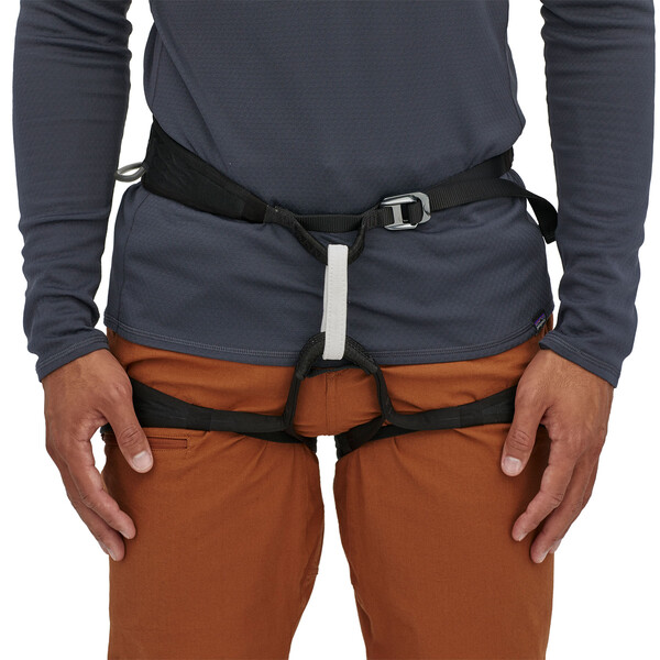 Zip fly with belt loops and partially elasticated waistband create a low-bulk, comfortable fit under a harness