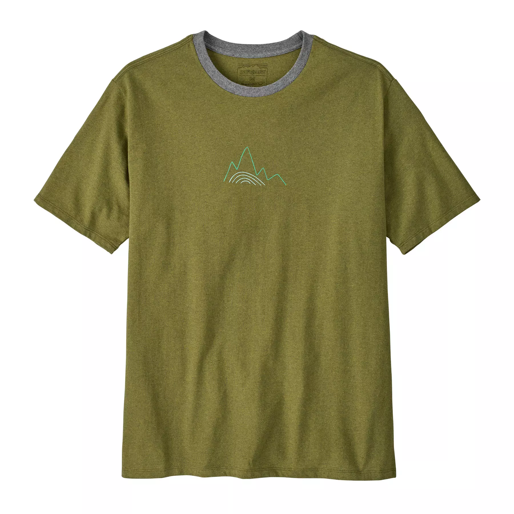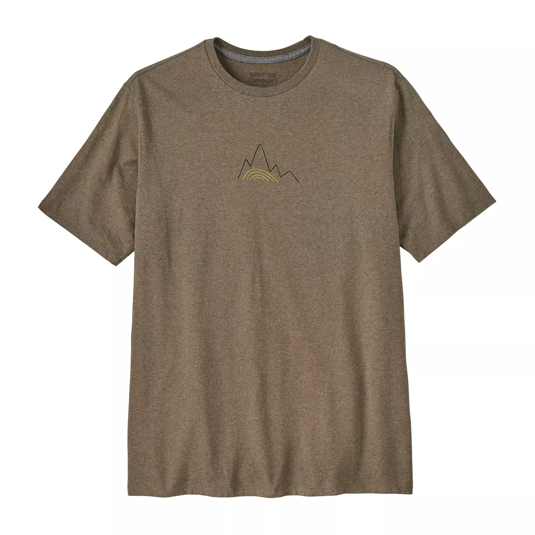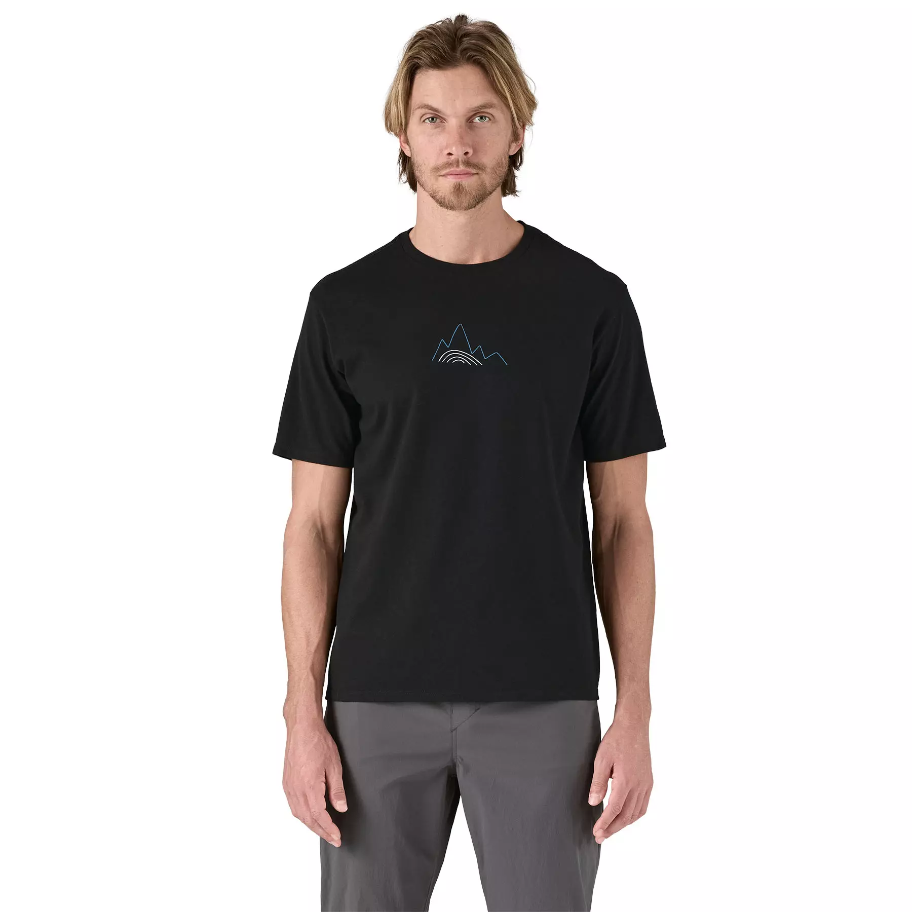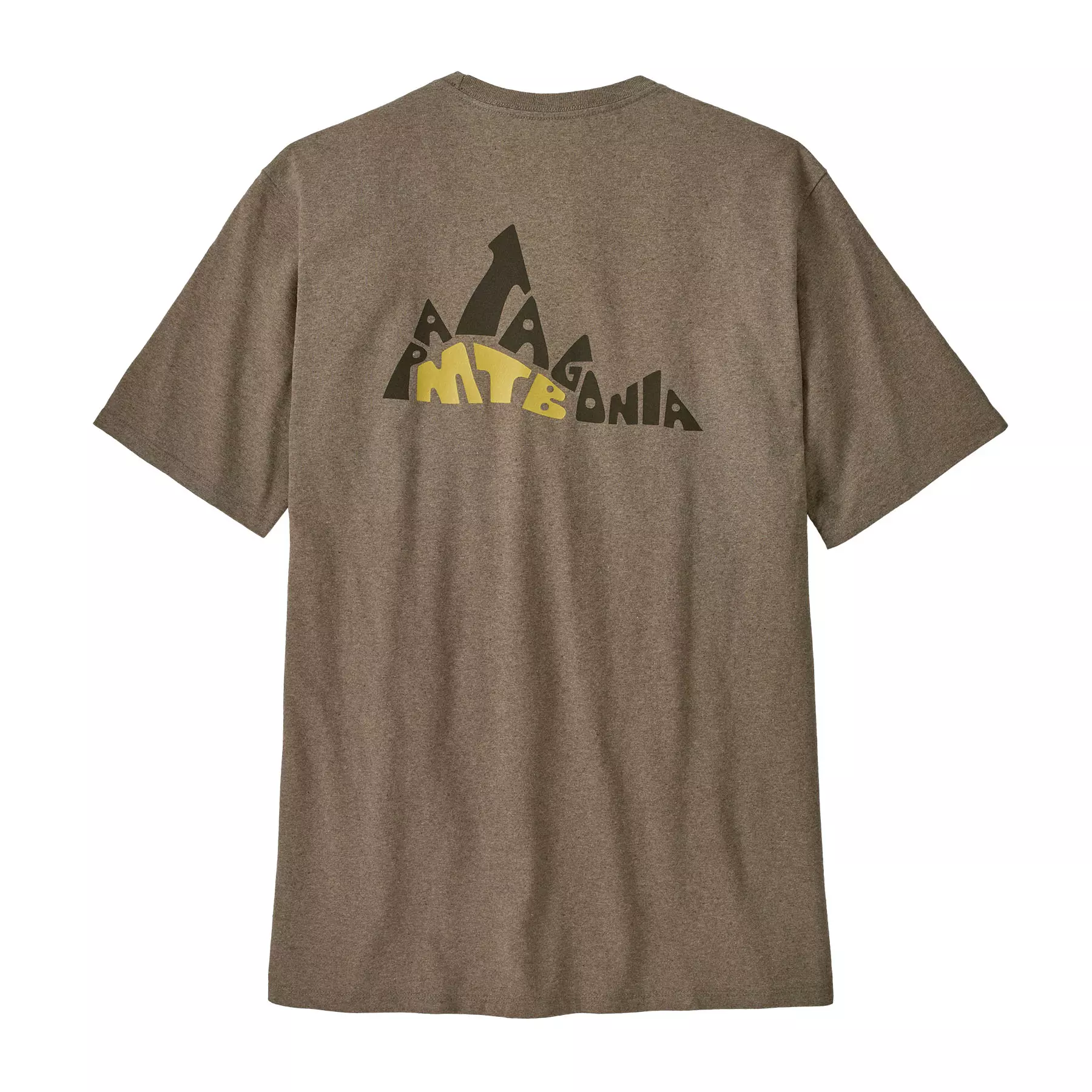 Berm Logo graphic combines the Patagonia wordmark with the building blocks of getting after it. They printed it on a jersey-knit T-shirt made from a 50/50 blend of recycled cotton and postconsumer recycled polyester. By utilizing fabric scraps and recycled bottles, this tee reduces their reliance on virgin raw materials.