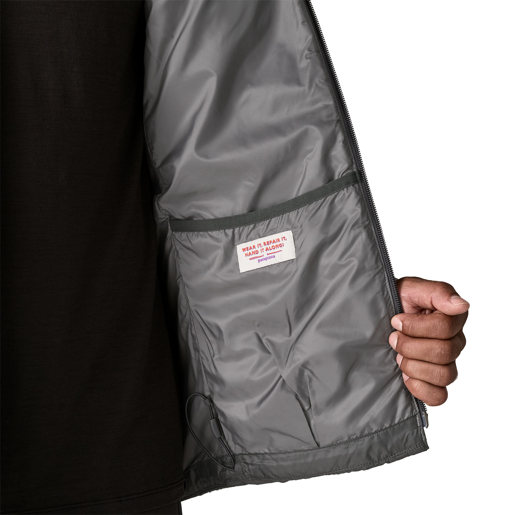 The body-mapped 100% recycled insulation uses PrimaLoft® Silver Insulation Eco—100% postconsumer recycled polyester that provides excellent warmth for its weight and retains heat even when wet. There’s 200-gram insulation in the hood and main body for warmth, and 170-gram insulation under the arms and along the sides for mobility.