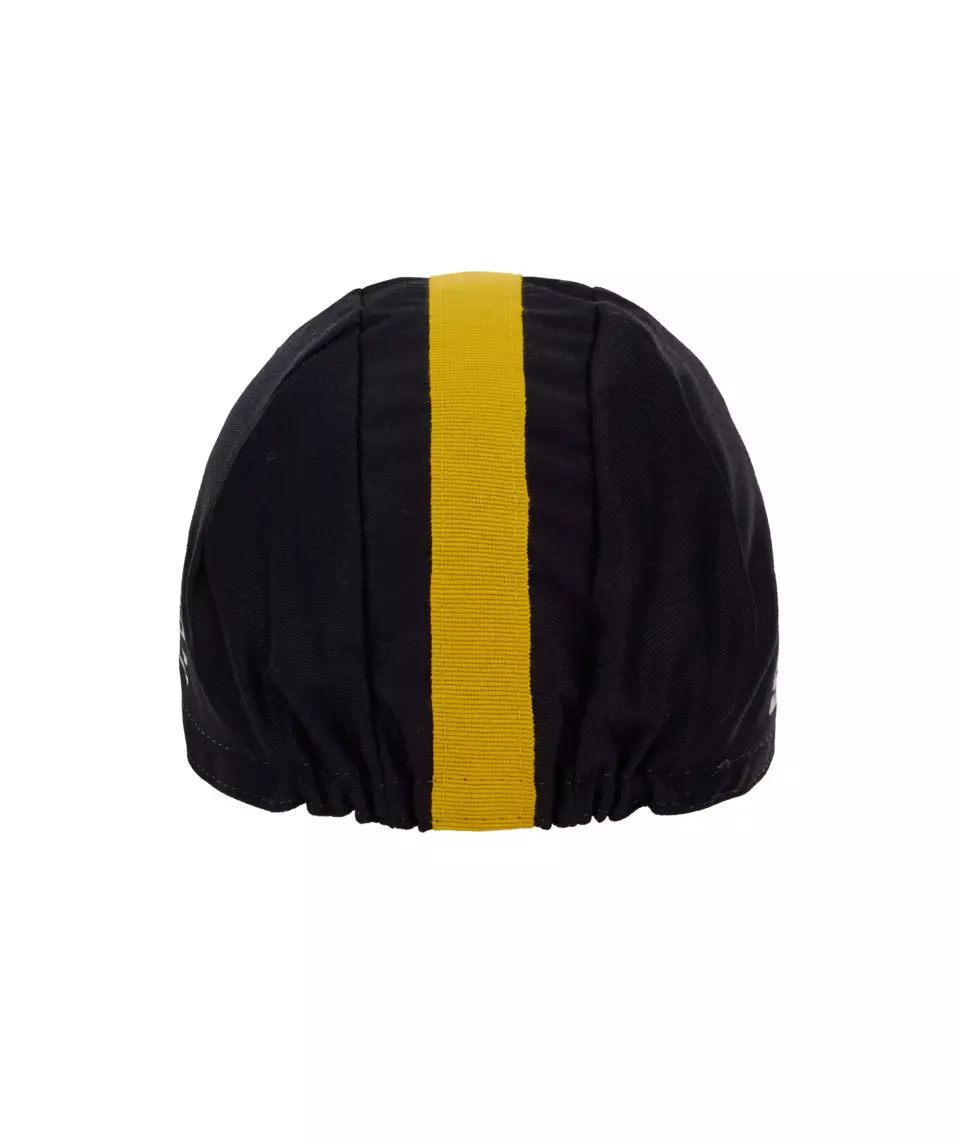 Cotton cycling cap for maximum protection from the sun. The cap has a central yellow fabric band and on the left side, an embroidered Pirelli Sport Club patch. Alone or under the helmet, it's your perfect ally for warm summer rides!