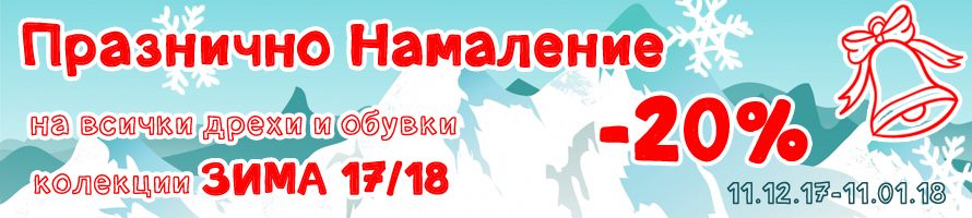 Коледният дух е вече в магазини Basecamp с началото на страхотните празнични намаления! От 11.12.17 до 11.01.18 дрехите и обувките от Новите Зимни колекции 17/18 на Patagonia, Direct Alpine, Marmot, Mont Bell, Icebreaker, Vibram Five Fingers, както и обувки и ски обувки от Scarpa ще ви очакват с -20% намаление! Нови попълнения в екипировката, Коледни подаръци за вас и любимите хора - очакваме ви на адрес Черни връх 90, Стамболийски 46, както и онлайн тук, за да направим пазаруването празнично и усмихнато!