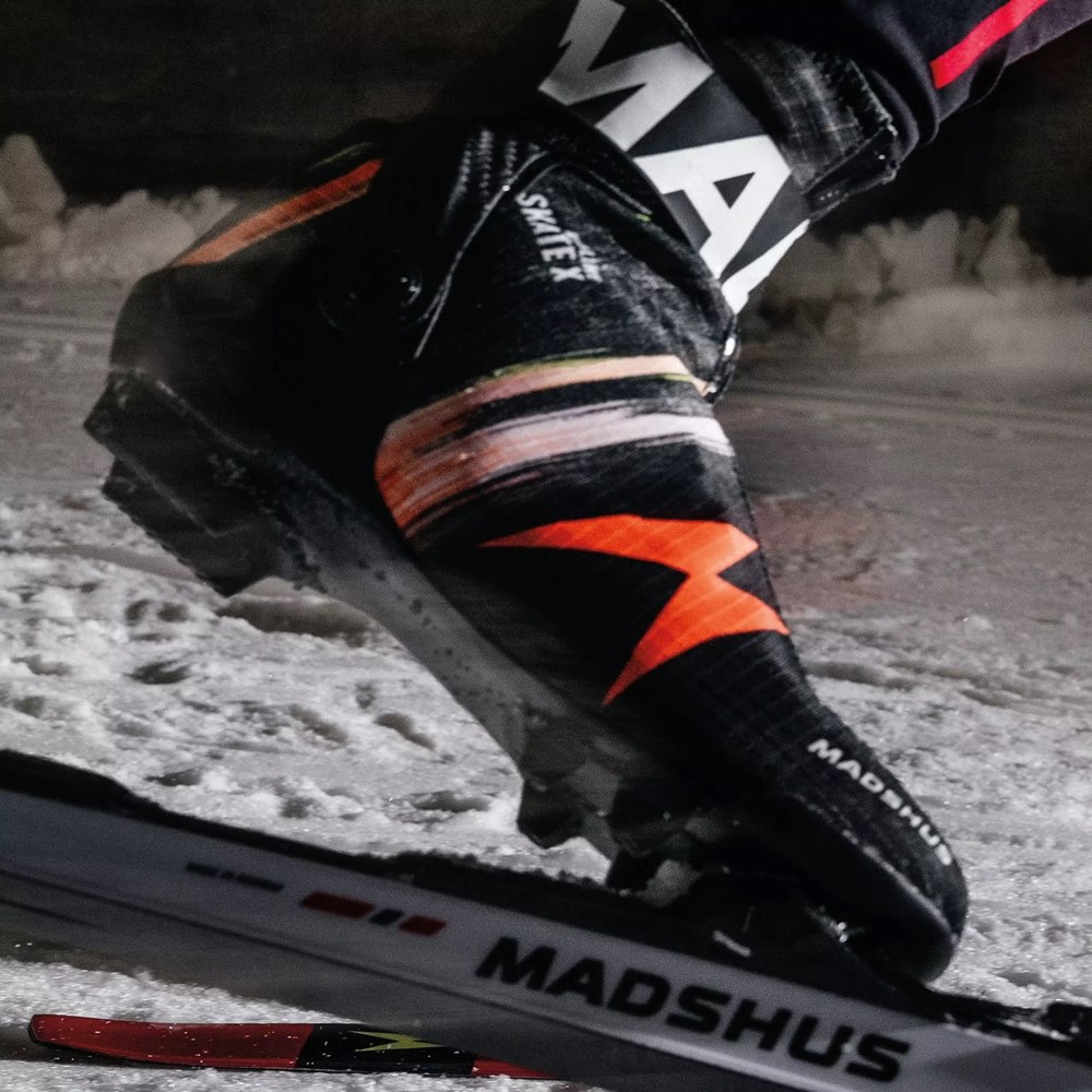 Redline Skate X е скейт обувка, разчупваща границите, предназначена да оптимизира стабилността, мощността и ефективността. В комбинация с RED Carbon Chassis, Madshus Ripstop Upper и Race Wrap 2.0 технологиите на Madshus, обувката осигурява по-добра странична стабилност, повишен баланс и оптимално предаване на мощността.