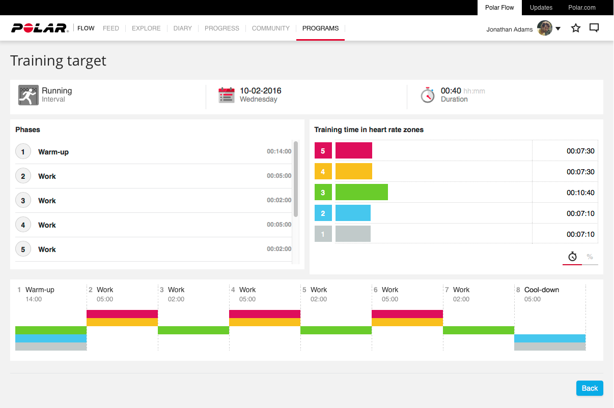 Щом бъде създаден, вашият план за бягане е достъпен в Polar Flow – онлайн платформата за вашите тренировки и упражнения. Polar Flow е наличен като програма за компютъра ви, както и като приложение за Android и IOS.