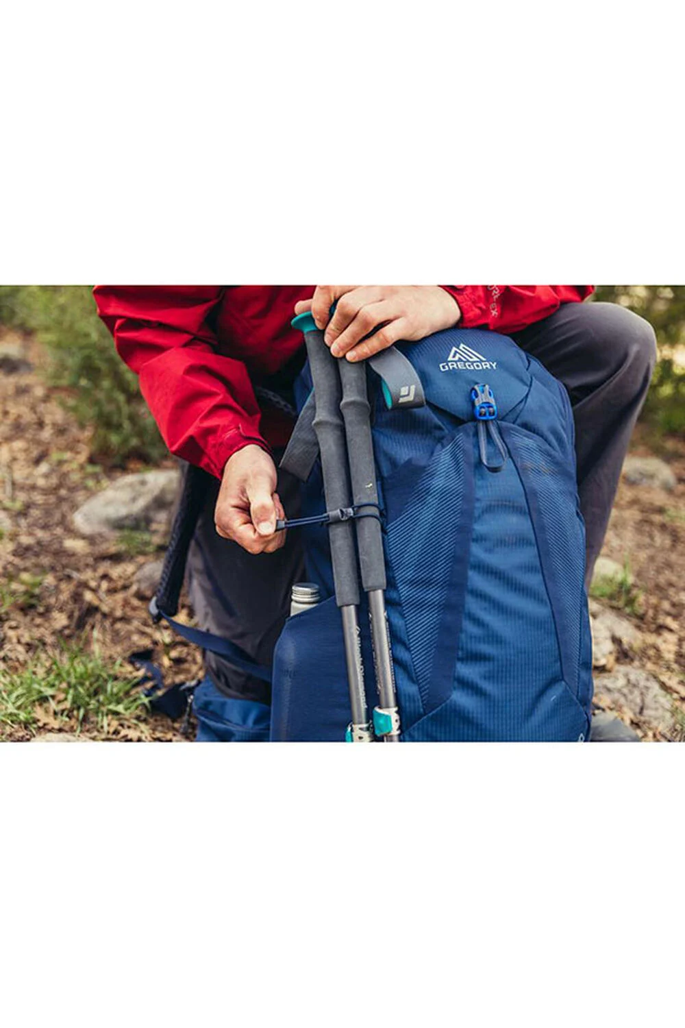 - Adjustable attachment loop and upper shock lock for trekking poles or an ice axe
