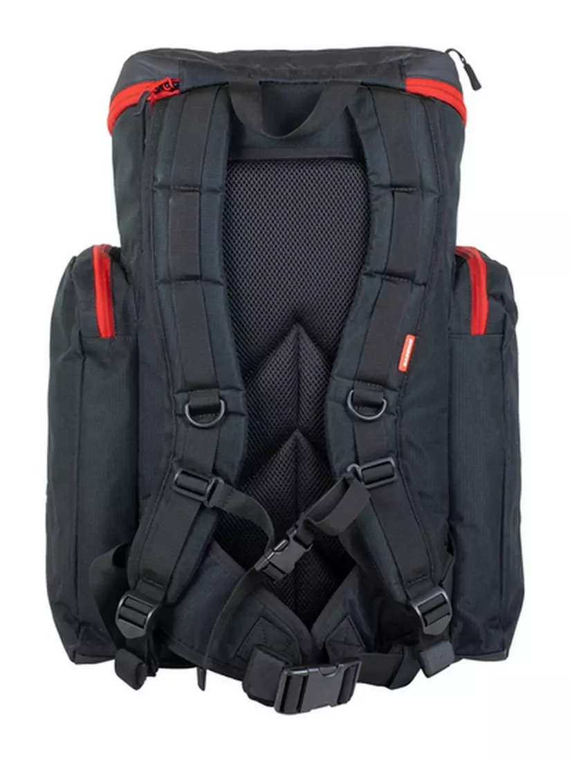 Backpack for use on both Race day and Every day Spacious main compartment and large side pockets Volume: 40L 600D Polyester Ripstop and YKK zippers.