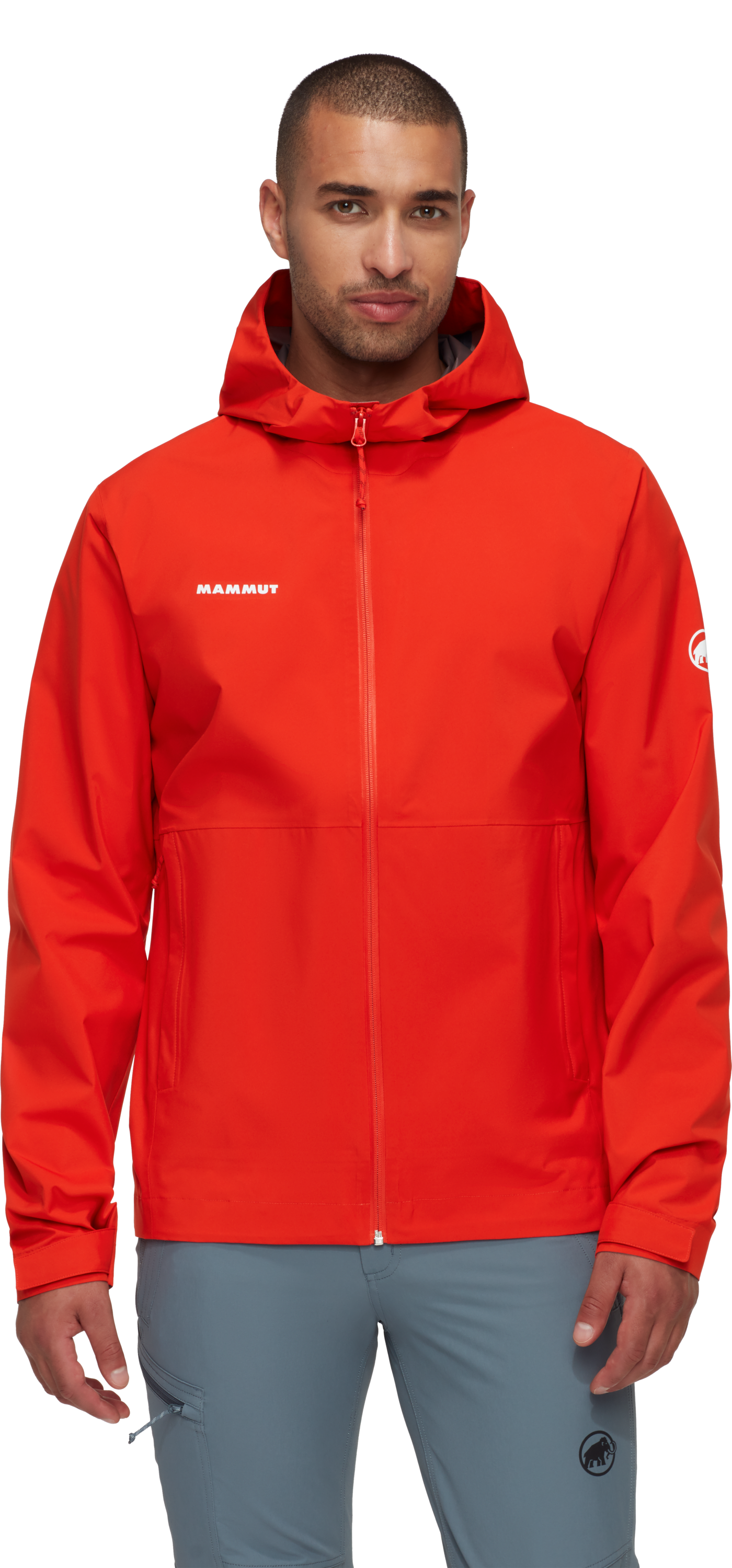 The jacket is made with a 2-layer Mammut DRY Tour laminate that provides dependable weather protection. The fabric is windproof, while the 10,000 mm water column and 10,000 g/m²/24h breathability rating create a good balance between protection and wearing comfort. The additional PFC-free DWR treatment helps the outer fabric repel moisture more effectively.