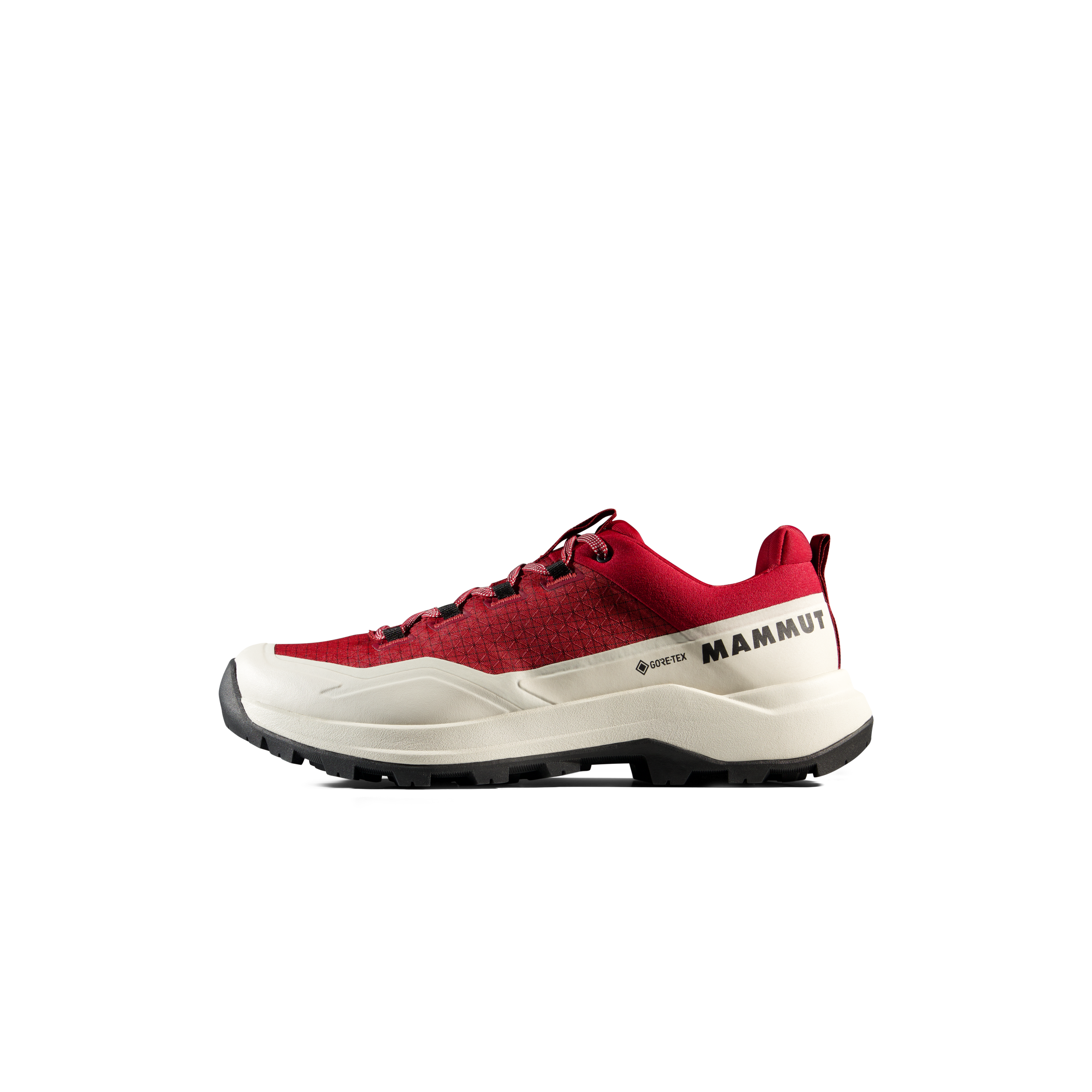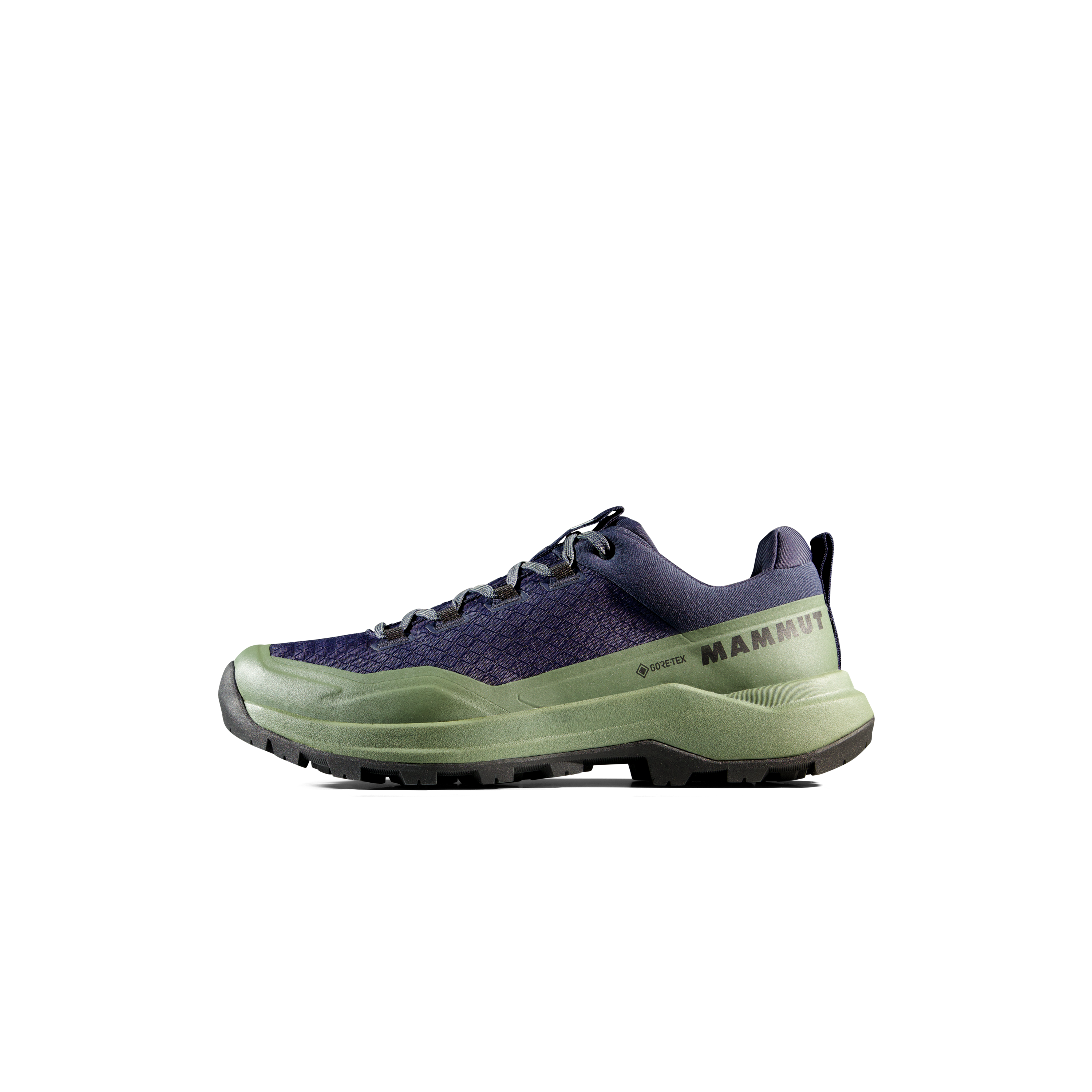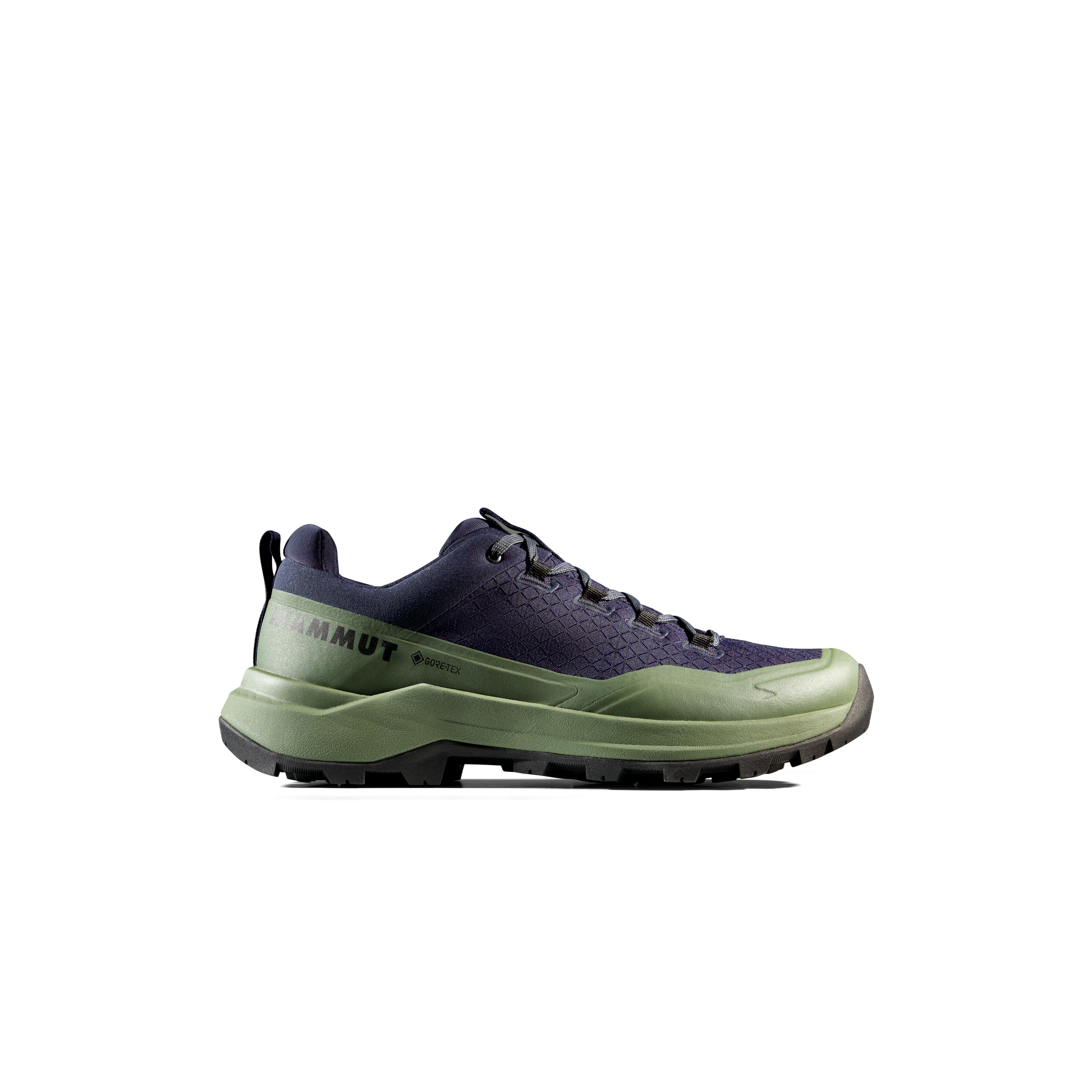 The upper is made from Double Layer Engineered Mesh, combining low weight with solid durability. The manufacturer also highlights an abrasion-resistant fabric upper and rubber rand, which improve protection and durability on rougher surfaces. The Mammut Swiss Design outsole is built for reliable grip in low temperatures, making the shoe a dependable option for mixed terrain and cooler conditions.