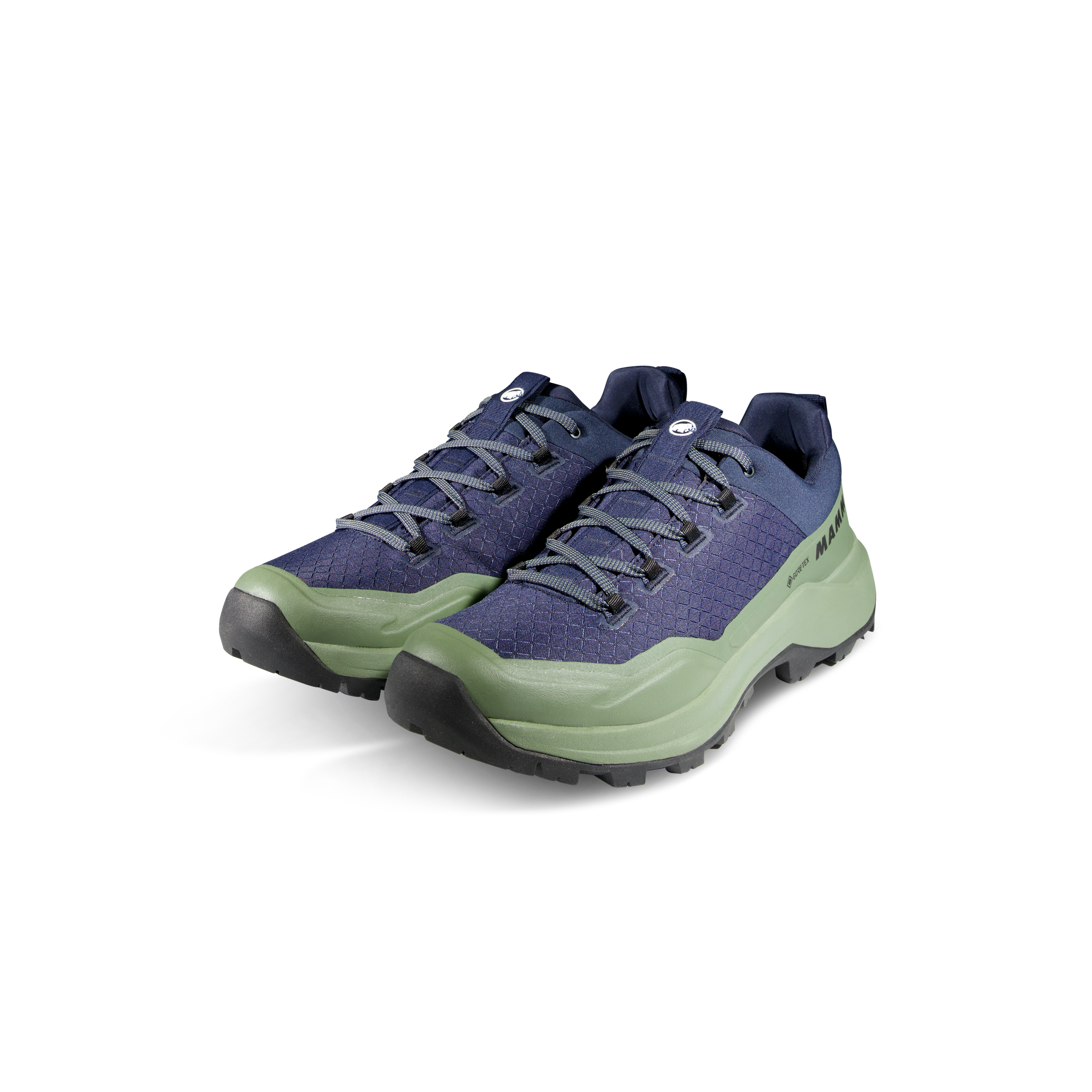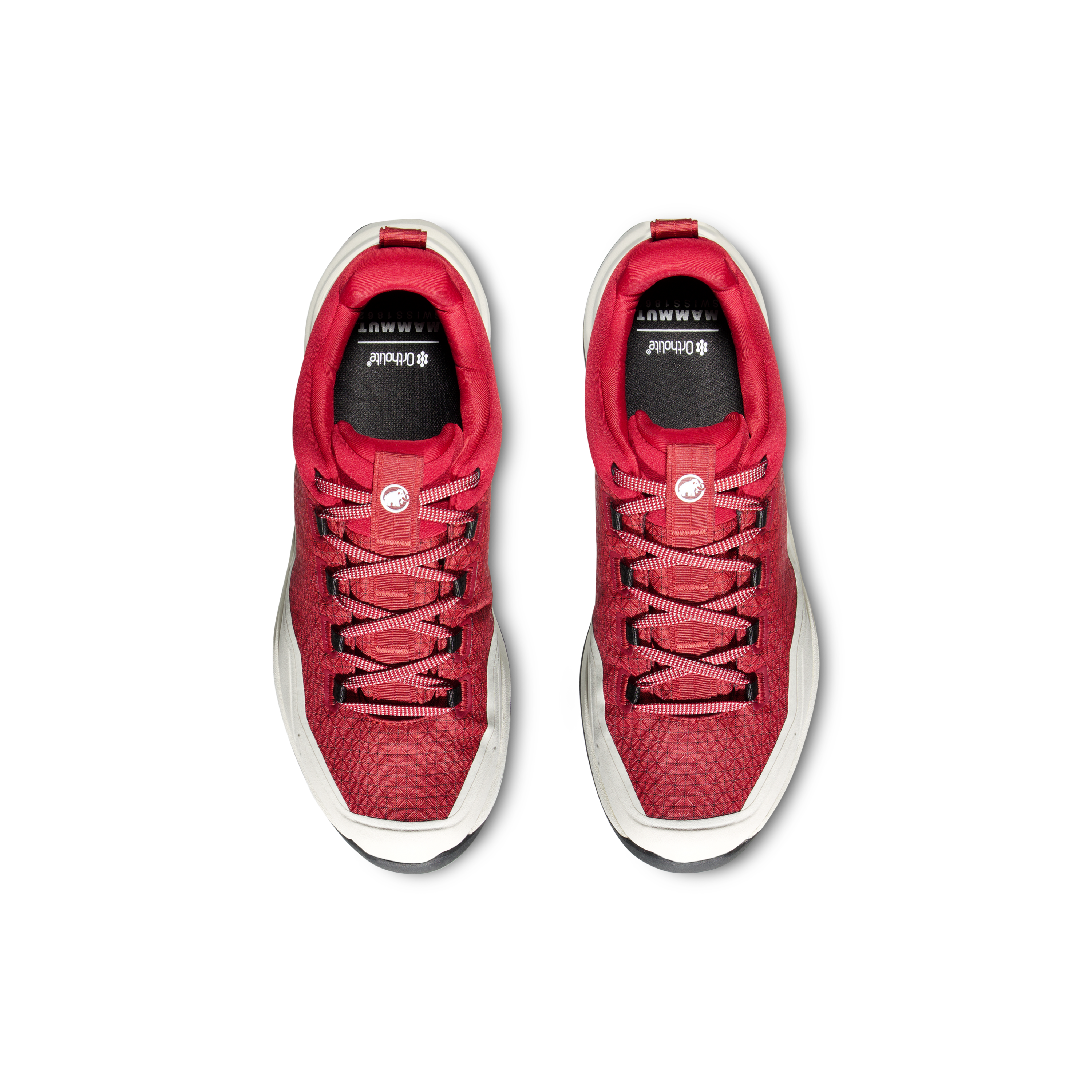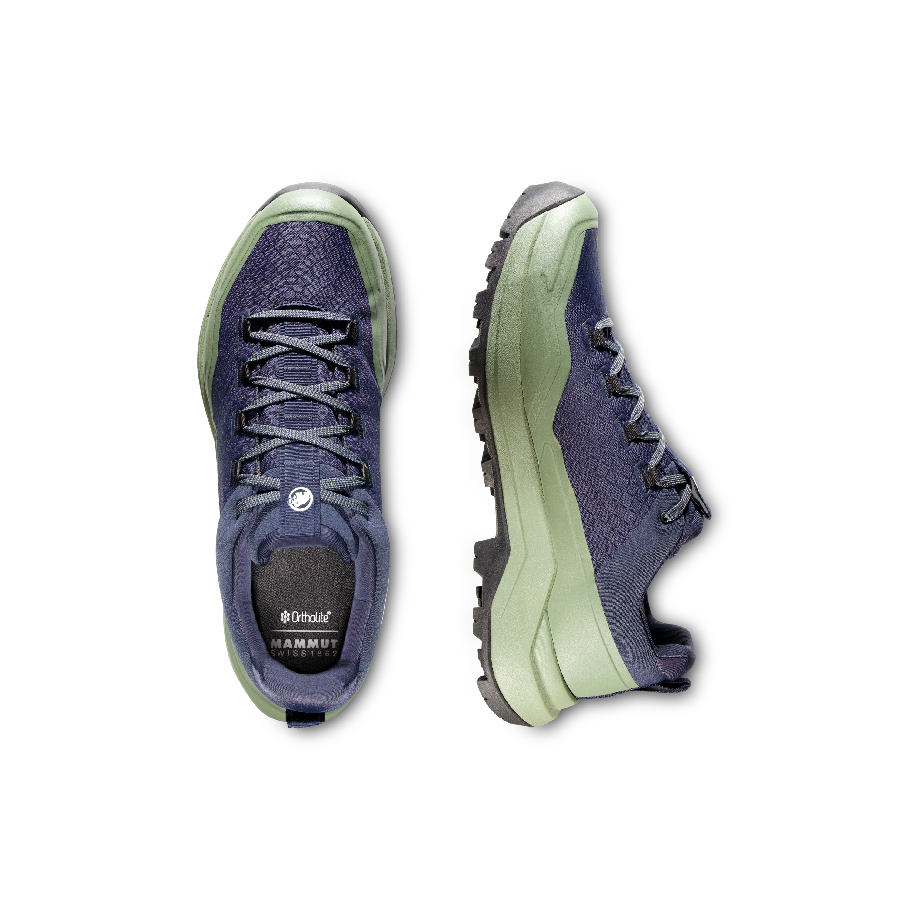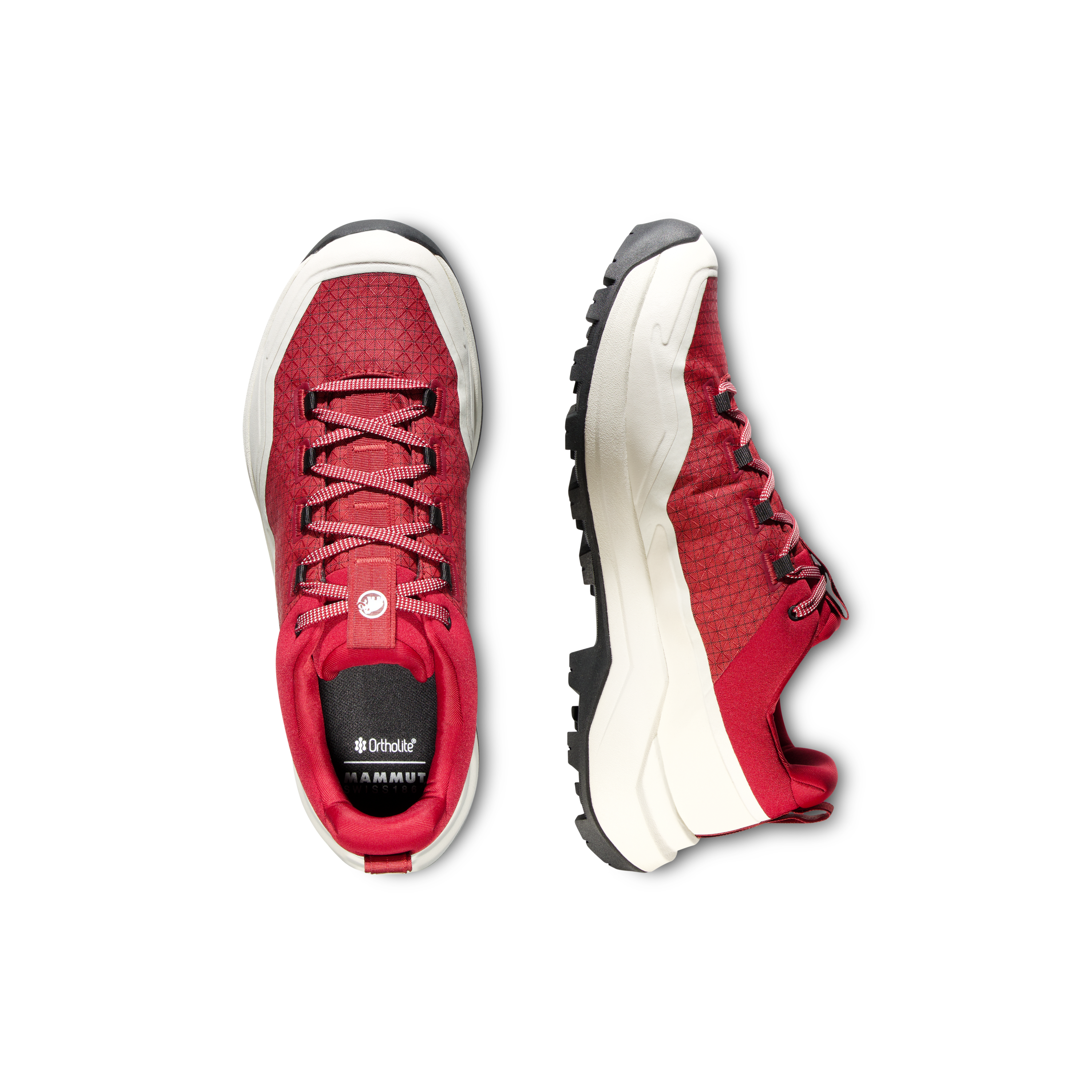 The upper is made from Double Layer Engineered Mesh, combining low weight with solid durability. The manufacturer also highlights an abrasion-resistant fabric upper and rubber rand, which improve protection and durability on rougher surfaces. The Mammut Swiss Design outsole is built for reliable grip in low temperatures, making the shoe a dependable option for mixed terrain and cooler conditions.