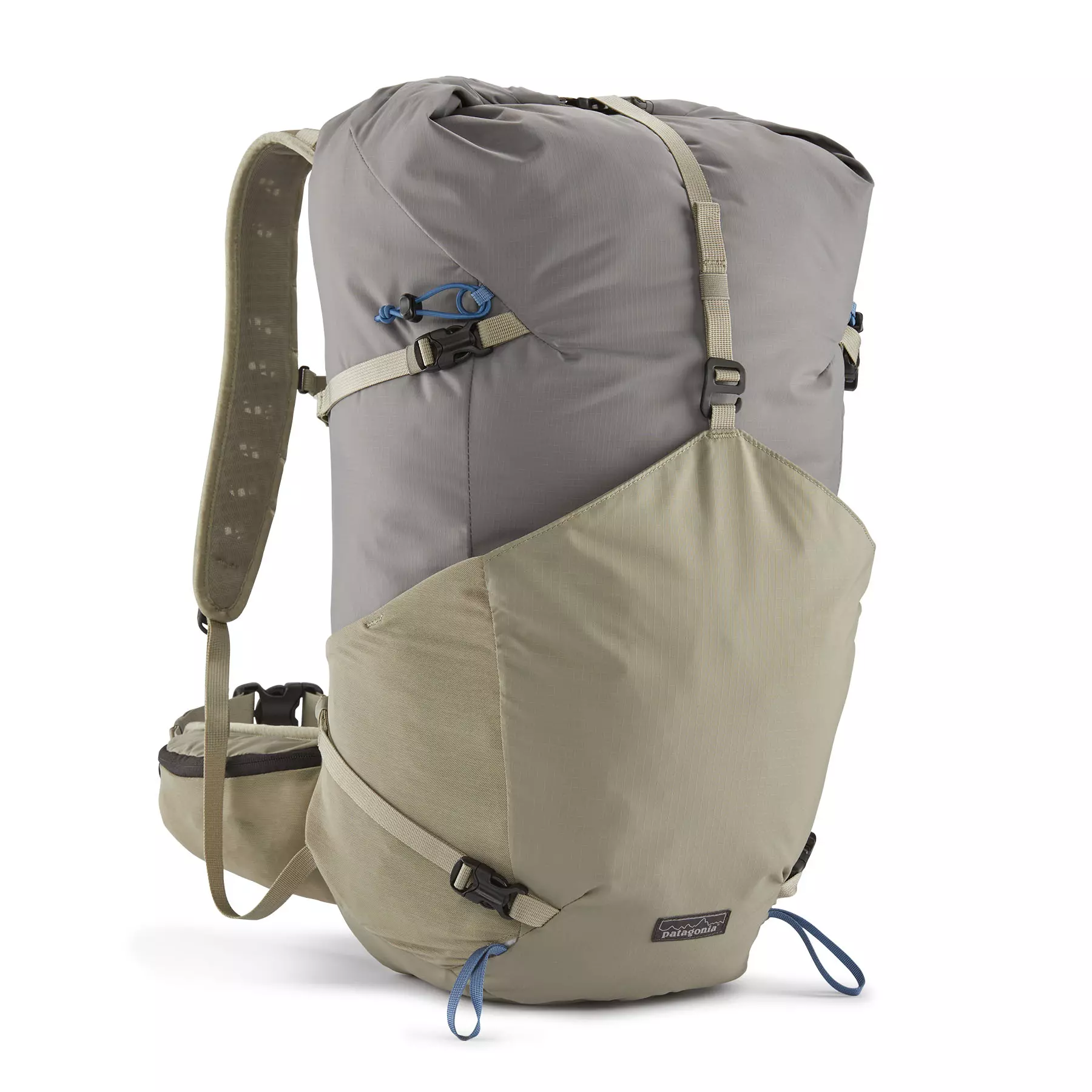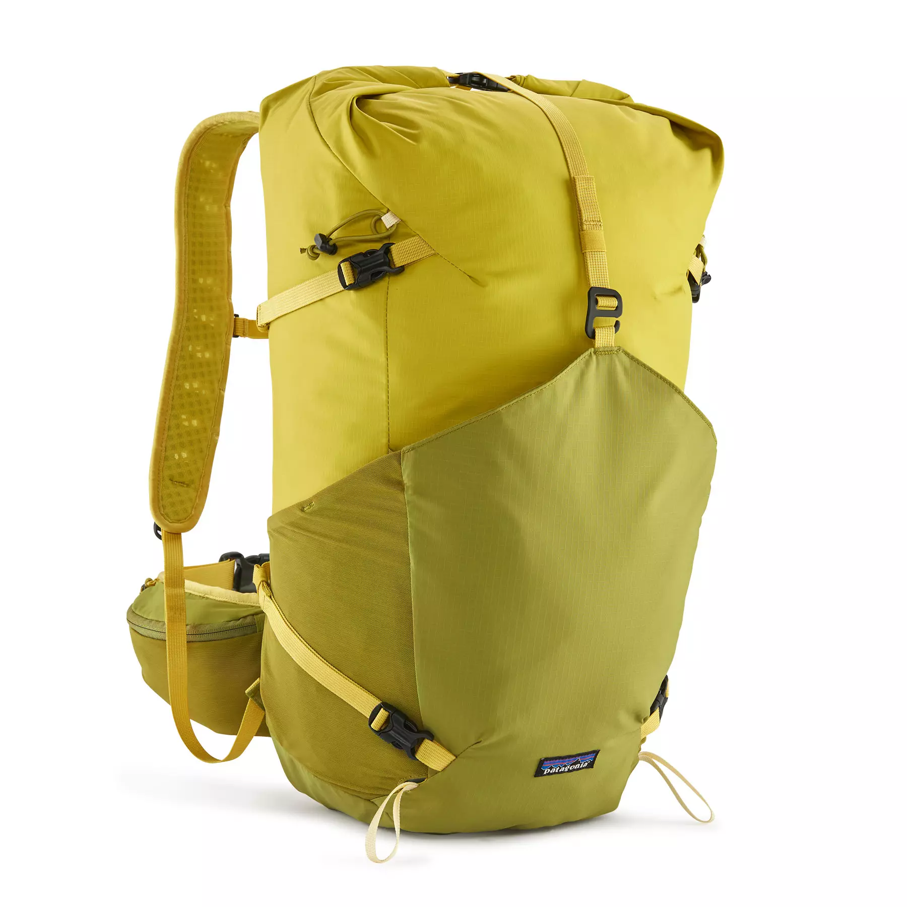 For a couple of nights when moving between huts or for light and fast excursions, this 36-liter pack features highly breathable fabric on the back panel and shoulder straps, plus a frame that supports heavier loads for going the distance in comfort. The roll-top closure lets you bring along extra gear when needed or cinch down smaller loads, and trail-specific details ensure there's a place for everything. Built from rugged 100% recycled nylon ripstop with a PU coating.