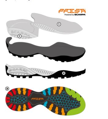 SOLE: The Presa® Sole is made in two components. Medium density biodegradable EVA midsole for maximum stability. The outsole is made with a biodegradable compound, which includes natural rubber. It is characterized by an excellent grip and a duration comparable to synthetic rubber.