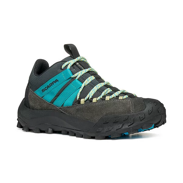 Scarpa Rove GTX WMN е модел, проектиран да предложи защита, сцепление и удобство в една обувка. С GORE-TEX мембрана, той пази краката сухи при влажно време, като същевременно позволява дишане. Подметката с ясно изразени грайфери, вдъхновена от трейл рънинга, дава добър захват на каменисти и кални участъци, но обувката остава удобна и стабилна при ходене по равни и градски повърхности. Горната част съчетава синтетични и кожени елементи за устойчивост и структура, а връзките са с удължена система за по-добро прилягане. Приблизителното тегло е 320 г за половин чифт при размер около EU 38, което прави модела добър избор за дълги часове на крака.