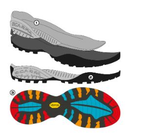 2. Външен слой VIBRAM® с ексклузивен дизайн от SCARPA изработен от TC4+ гумен композитен материал за здравина и устойчивост