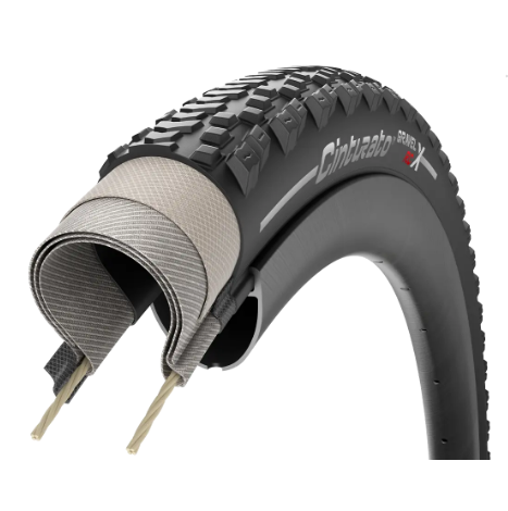 От успеха на Cinturato Gravel RC, първата специална гума за състезания по чакъл, Pirelli разработиха още по-подсилена версия: Cinturato Gravel RC X. Този модел включва новия Techwall X Gravel, 60tpi тъканна структура на корпуса, удължена отвъд протектора линия, с допълнителен слой за защита. Запазвайки характерния дизайн на протектора на RC моделите, Cinturato Gravel RC X е проектирана за състезания с чакъл и грапави повърхности.