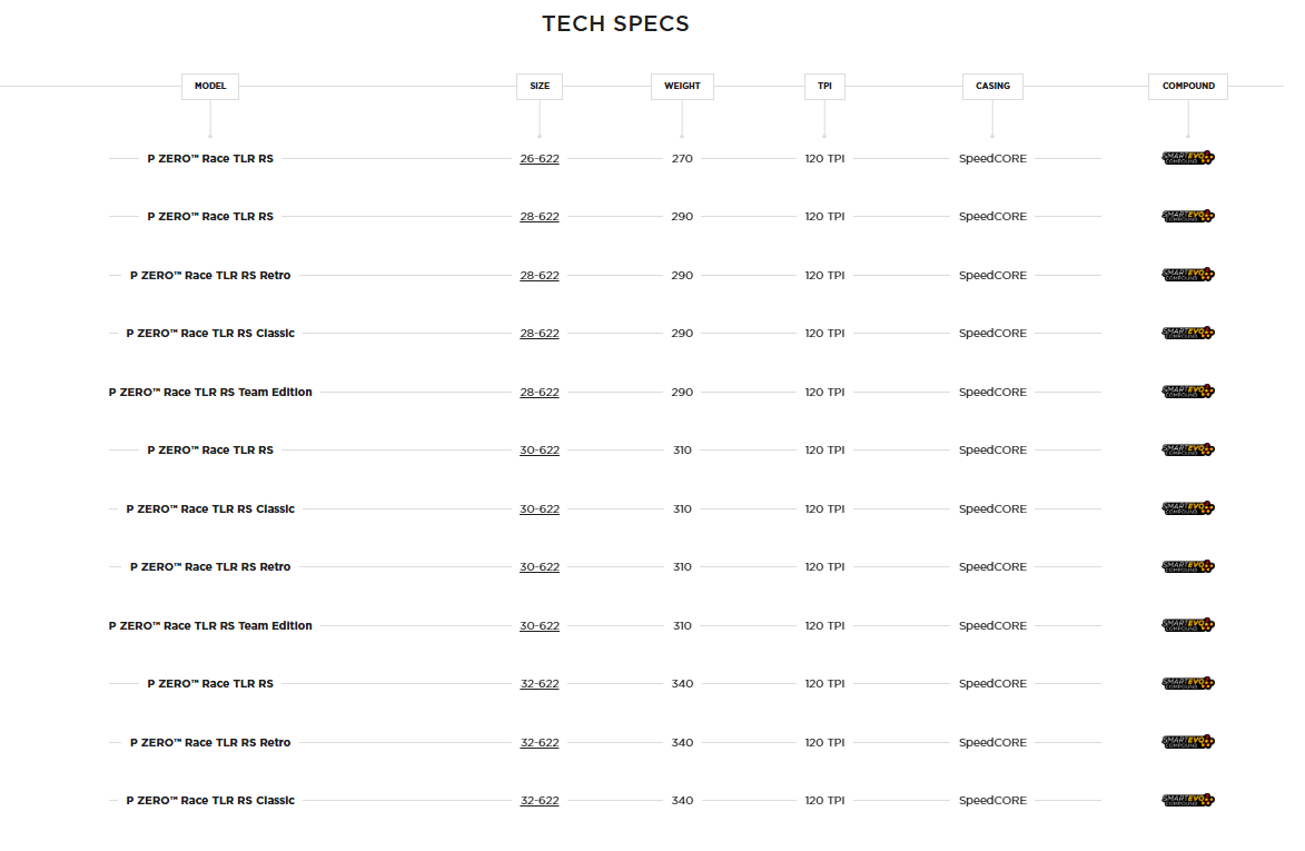 P ZERO™ Race TLR RS представлява най-новото допълнение към гамата от пътни състезателни гуми на Prelli P ZERO™ Race, произведени в Италия. Тя е разработена в сътрудничество с професионални спортисти от техните екипи в World Tour, за да осигури превъзходна скорост и сцепление в сравнение с всяка друга гума, която сме създали.