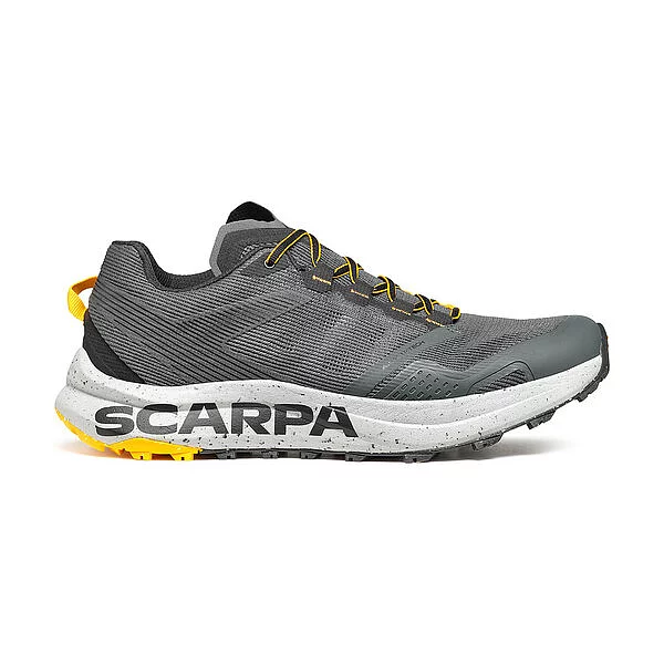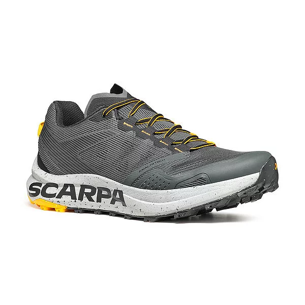 Следващата стъпка в пътуването на Scarpa за устойчиво развитие, SPIN PLANET въвежда нова концепция в категорията Trail Running с горната си част, която е изработена от 100% рециклирани материали, докато EVA междинната подметка е 45% рециклирана, а гумената външна подметка е 30% рециклирана. Идеалните обувки за бегачи, които преследват дълги разстояния по трейл пътеките, благодарение на обема на междинната подметка, предназначен да абсорбира ударите със земята и да осигури защитно омекотяване.