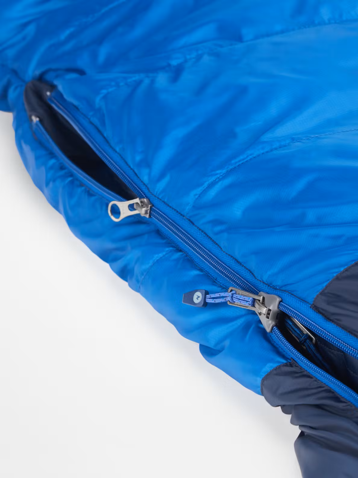 - Anti-snag slider on main zipper and fold-down second zipper provide added ventilation and easy access in and out of sleeping bag