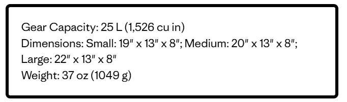 Divider in the main storage area accommodates a hydration reservoir, and internal lash points allow you to clip in an extra pocket or hang keys